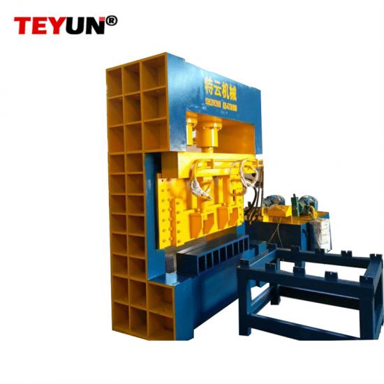 Teyun廢舊金屬剪切機(jī)主要有:箱式剪、鱷魚剪、虎頭剪和龍門剪,其中龍門剪分為Q91重型龍門剪和Q15銅板、鎳板龍門剪。
